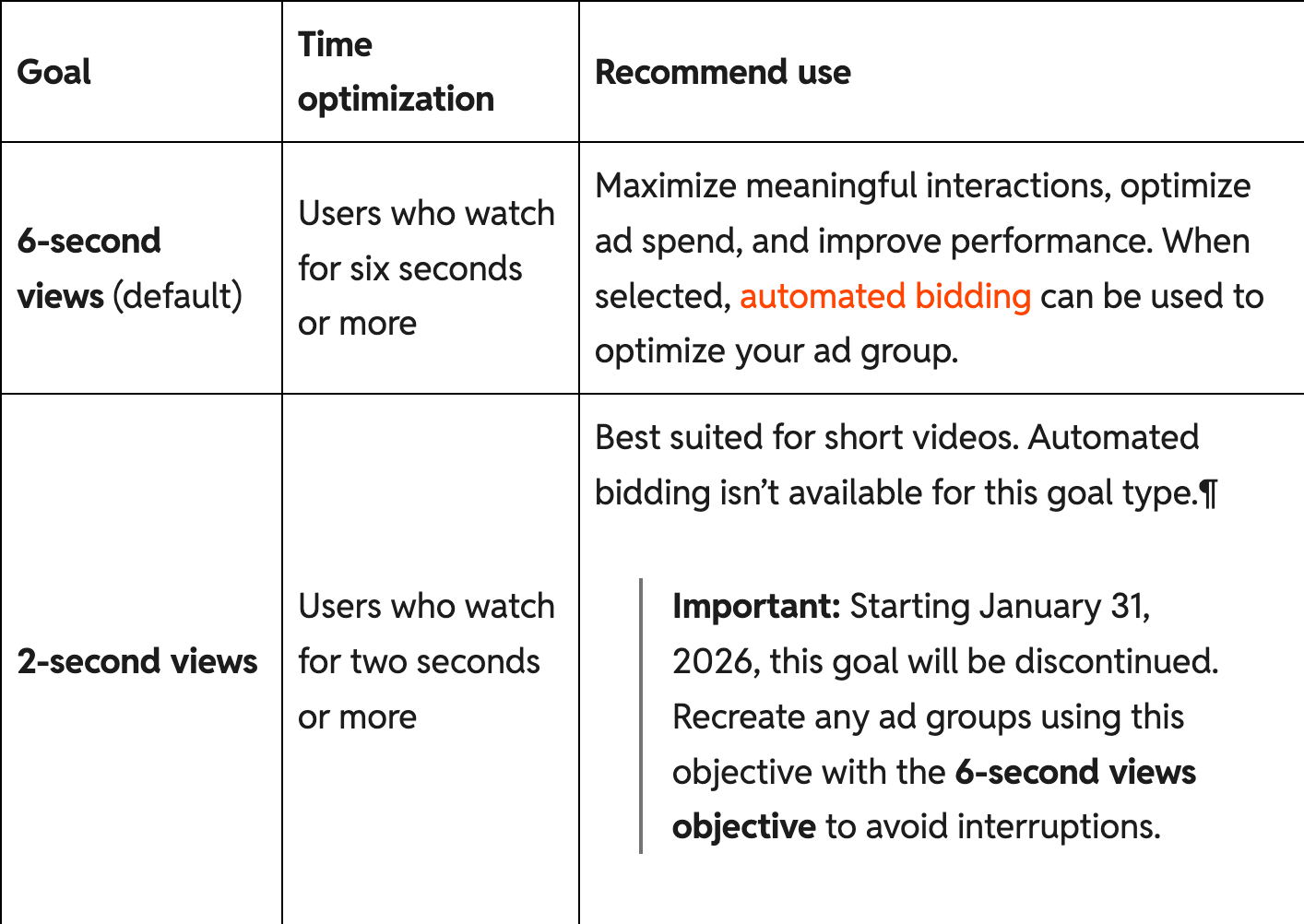 Video views kampanje definitivno prelaze na 6-second views optimizaciju od veljače.