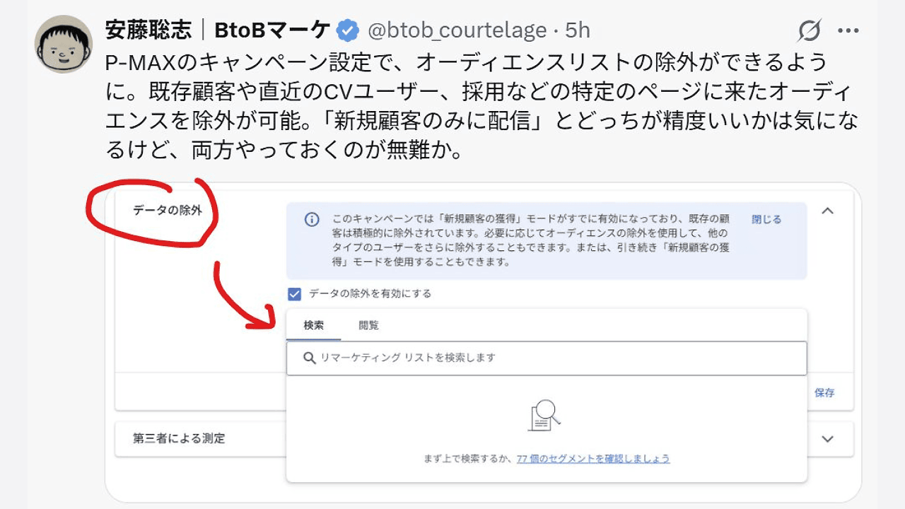 Japanac Satoshi Ando je uočio “Data Exclusion” opciju u postavkama PMax kampanje. Još ne znamo kad će ovo biti dostupno globalno ali imajte na umu da će se dogoditi.