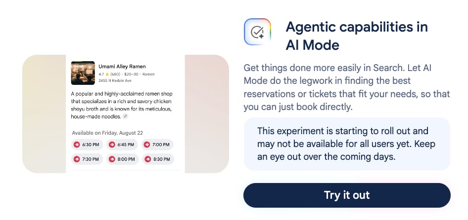 GOOGLE AI MODE TESTIRA AGENTIC BOOKING