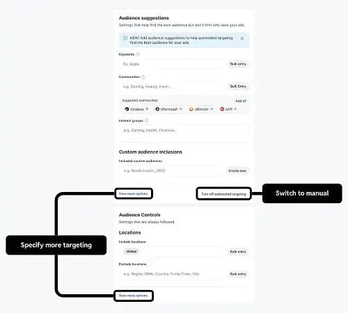 UI sad favorizira automatski targeting u ad grupama.