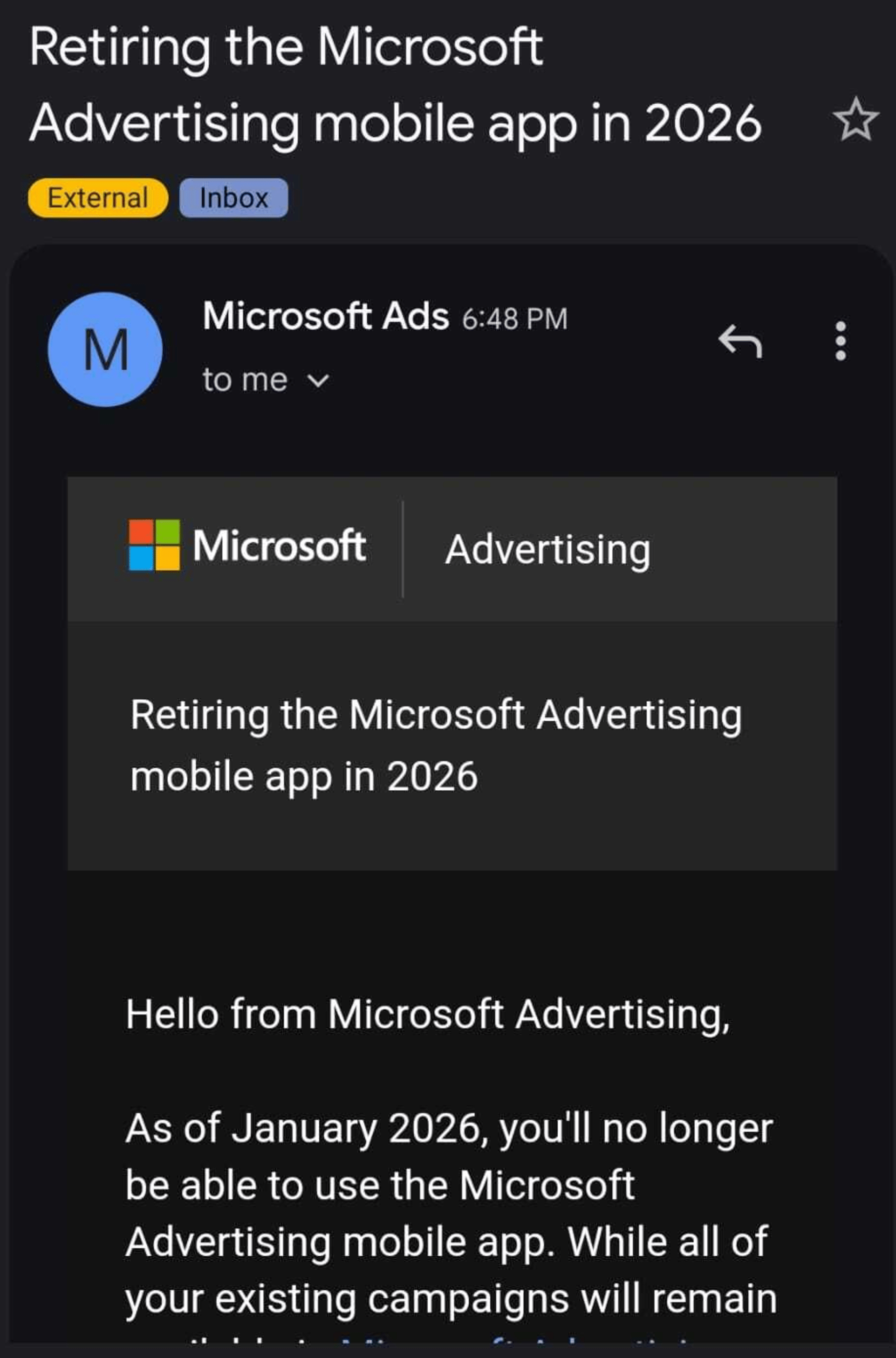 Ovo mi je došlo na mail. Tugica, mobilne aplikacije za ads managere su me spasile 100 puta.